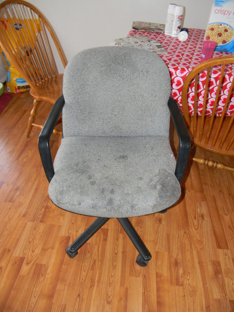She has a house in Winchester that is packed full of "stuff". The "stuff" has sat there for 4 years. This past month we HAD to go get this computer chair she had in her bedroom. Here is what it looked like before I did anything to it...ick, gross, etc!! Needs some major major help!!