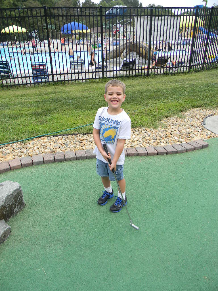 One of the advantages we have with family living so very close to us is that every once and awhile we can get out with Chris and just spend time with him. With planning our trip to Disney, we were trying to come up with some other places we could go, besides the parks, for some fun. One thing we have never done is go mini golfing. There are apparently some great places to go, but with Chris still being young we wanted to make sure his attention span would last so we gave it a go at Volcano Island's mini golf course in Algonkian Park